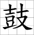 Grille d'écriture du caractère : - gǔ 鼓 (Tambour, battre, simuler, gonfler / bomber)