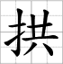 Grille d'écriture du caractère : - gǒng 拱 (Entourer, courber, pousser, arc / voûte)