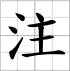 Grille d'écriture du caractère : - zhù 注 (Verser, fixer, note / commentaire, enjeu / mise)