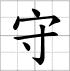 Grille d'écriture du caractère : - shǒu 守 (Garder / défendre, observer, être proche de)