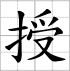 Grille d'écriture du caractère : - shòu 授 (Enseigner / apprendre / décerner / conférer)