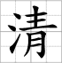 Grille d'écriture du caractère : - qīng 清 (Clair / pur / distinct / net / liquider)