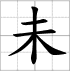 Grille d'écriture du caractère : - wèi 未 (Ne ....pas / ne ...pas encore / le 8e des 12 Rameaux terrestres)