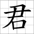 Grille d'écriture du caractère : - jūn 君 (Souverain / monarque / monsieur)