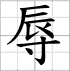 Grille d'écriture du caractère : - rǔ 辱 (Humiliation / honte / insulter / humilier)