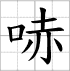 Grille d'écriture du caractère : - chī 哧 ((bruit d'un papier que l'on déchire))