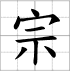 Grille d'écriture du caractère : - zōng 宗 (Ancêtres / aïeux / clan / ordre / objectif / but)