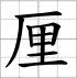 Grille d'écriture du caractère : - lí 厘 (Centi- / une unité de mesure / ordonner / arranger (littéraire))