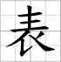 Grille d'écriture du caractère : - biǎo 表 (Apparence / surface / tableau / formule / montre)