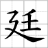 Grille d'écriture du caractère : - tíng 廷 (Cour / palais du souverain)