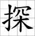 Grille d'écriture du caractère : - tàn 探 (Essayer, chercher, tendre)