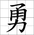 Grille d'écriture du caractère : - yǒng 勇 (Brave, courageux)