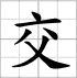 Grille d'écriture du caractère : - jiāo 交 (Livrer / remettre / échanger / se croiser / nouer des relations / jonction / rencontre / ensemble)