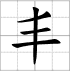 Grille d'écriture du caractère : - fēng 丰 (Abondant / plein)