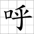 Grille d'écriture du caractère : - hū 呼 (Expirer / crier / appeler)