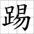 Grille d'écriture du caractère : - tī 踢 (Donner un coup de pied / Jouer)