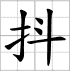Grille d'écriture du caractère : - dǒu 抖 (Trembler / frissonner / frémir / secouer / remonter le moral)