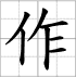 Grille d'écriture du caractère : - zuò 作 (Faire / composer / écrire / prendre pour / considérer comme / servir de / ouvrage / œuvre)
