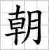 Grille d'écriture du caractère : - cháo 朝 (Cour impériale / dynastie)