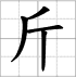 Grille d'écriture du caractère : - jīn 斤 (Unité de poids chinoise égale à 500 g / livre)