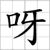 Grille d'écriture du caractère : - yā 呀 (Ah / oh / grincement ( d'une porte ))